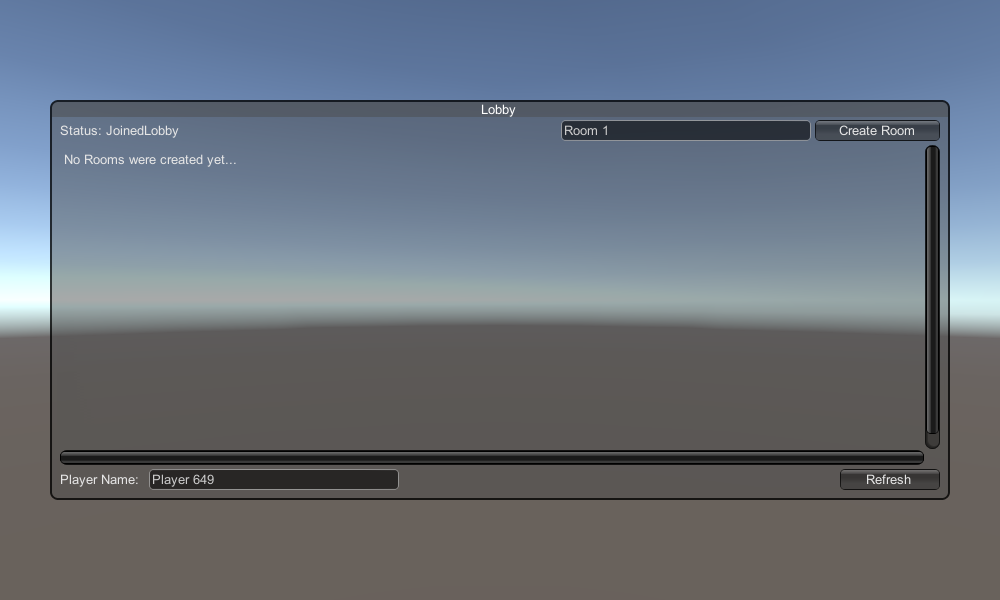 Lobi mantığını içerecek bir Lobi sahnesi oluşturarak başlayalım (Mevcut odalara göz atmak, yeni odalar oluşturmak vb.):