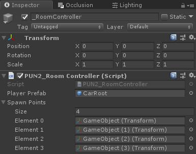 - _RoomController Nesnesine bir PUN2_RoomController komut dosyası ekleyin