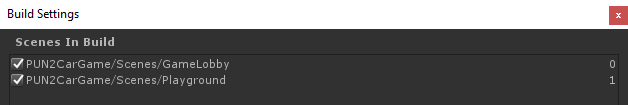 - Yapı ayarlarına hem GameLobby hem de Oyun Alanı Sahnelerini ekleyin: