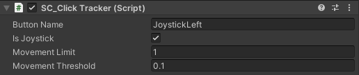 - SC_ClickTracker'da Düğme Adını herhangi bir benzersiz isme ayarlayın (benim durumumda bunu 'JoystickLeft' olarak ayarladım) ve 'Is Joystick' onay kutusunu etkinleştirin.