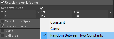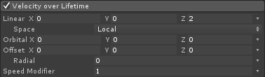 - Parçacık Sisteminde şu modülleri etkinleştirin: Emisyon, Şekil, Ömür Boyu Hız, Ömür Boyu Renk, Ömür Boyu Boyut , Ömür Boyu Dönüş, Dış Kuvvetler, Oluşturucu.