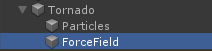 - "ForceField"'i "Tornado" GameObject'in içine taşıyın ve konumunu (0, 0, 0) olarak değiştirin